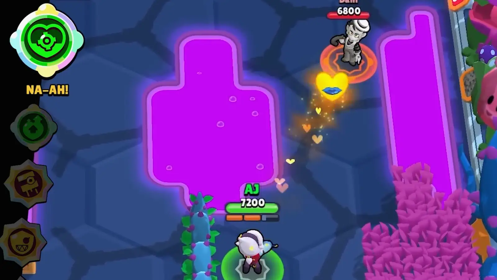 Damian si posiziona come brawler da mischia aggressivo, ottimale per modalità dove il controllo del territorio e l’ingaggio ravvicinato fanno la differenza.